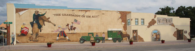 Tim Haas and Linda Cassels-Hofmann with Art Effects designed and painted this 100 foot mural depicting the history of the Arcadia All Florida Championship Rodeo in Arcadia, Florida